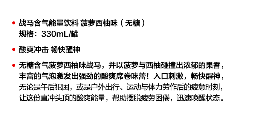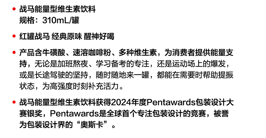 2025年,战马正式发布焕新红罐,并同步推出夏日柠檬、菠萝西柚等六款无糖含气新品,以更健康、更丰富的产品矩阵,为年轻消费群体提供更好的能量体验。